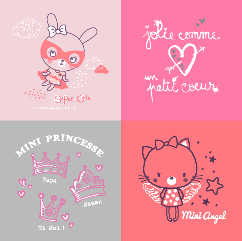 Dessins vendus dans le textile, secteur bébé 0-3 ans via le studio DUO FORTE Paris depuis 2006. www.studioduoforte.com